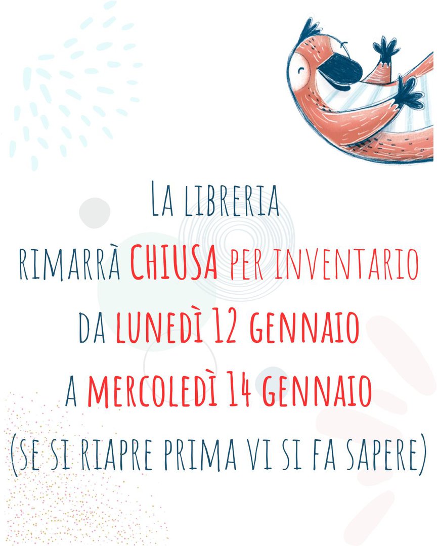 Informiamo la gentile clientela che la libreria sarà chiusa per inventario da lunedì 12 a mercoledì 14 gennaio.